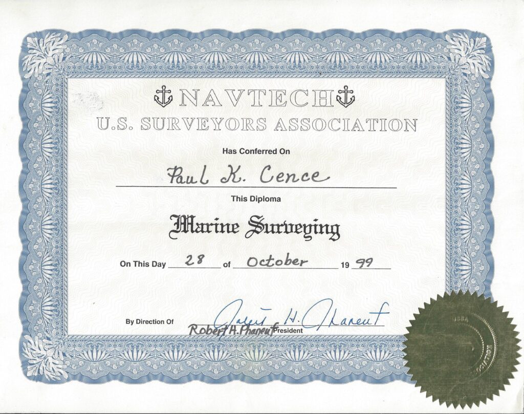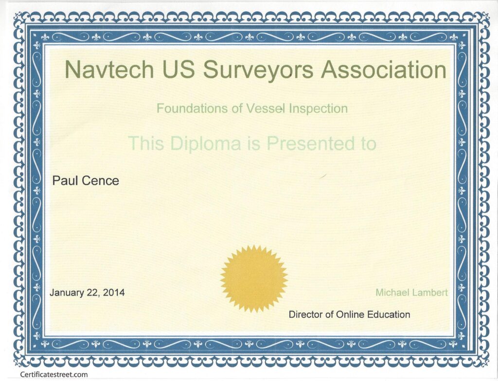 At Cence Marine, I back every survey with recognized industry credentials. I am proud to be certified by Navtech and USAA, ensuring that my work meets rigorous professional standards and is trusted by both clients and insurers alike.